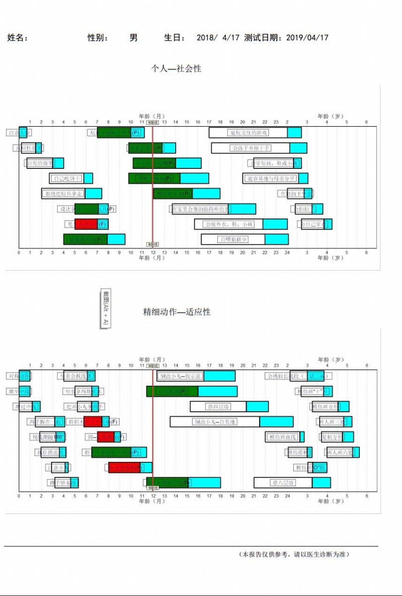 2、適應于0~6歲兒童,DDST由四個分測驗組成,即個人與社會行為、細動作與適應行為、語言和大運動等。DDST主要應用于以下幾個方面:作為常規(guī)的發(fā)育篩查工具,對臨床上無明顯癥狀而在發(fā)育上可能有問題兒童進行篩查;對可疑兒童進行初步判定;對有高危因素兒童進行發(fā)育監(jiān)測;觀察早期治療和干預訓練的效果。
